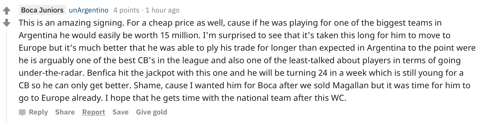 Costume ser muito relutente com jogadores. Mas acho que temos aqui grande central.