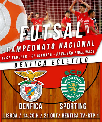 FUTSAL | 21 de outubro, às 14h20 | Pavilhão Fidelidade | Campeonato Nacional 1.ª Divisão | SL Benfica-Sporting CP