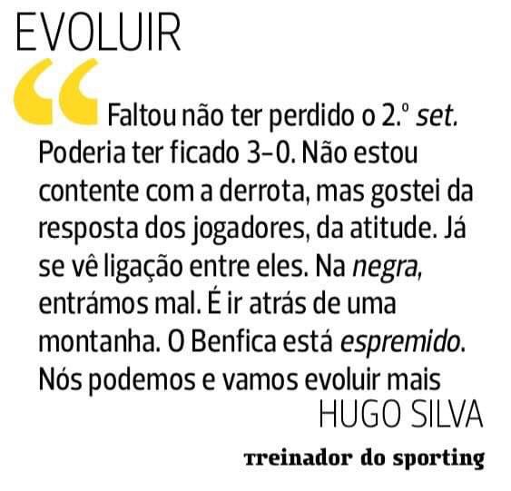 A instituição Benfica é MUITO superior à Agremiação do Lumiar. A equipa de Voleibol do Benfica é MUITO superior à equipa de Voleibol do Sporting. Não é admissível perder uma vantagem de 7 pontos e desculpar isso com um ponto mal atribuído.