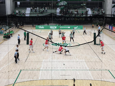 e para finalizar, ganhar aqui é quase impossivel. fazem o que querem dos árbitros, têm coquinados no banco de suplentes (Sandro Correia) que só estão ali para provocar e insultar, é gajos que entram das bancadas entre os sets, é o filho da puta do Roberto Reis a provocar a cada ponto, enfim...