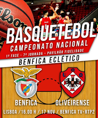 CN Fase Reg. 7ª J: SL Benfica 83 - 75 UD Oliveirense, 17Nov. Sáb. 16h00 *BTV1*