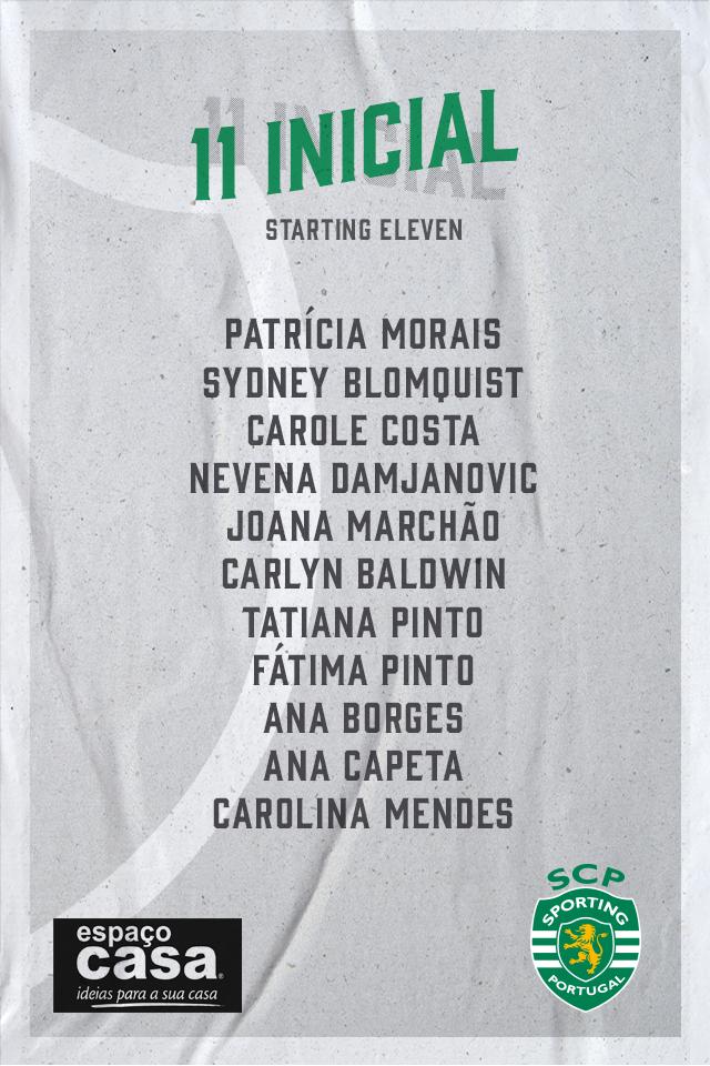 Onze inicial do Benfica: Dani Neuhaus; Daiane, Tayla, Sílvia Rebelo, Yasmim; Pauleta, Patrícia Llanos, Ana Vitória; Evy Pereira, Geyse e Darlene (cap).