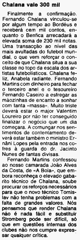 Imperdivel para os Benfiquistas e admiradores de Chalana em particular.