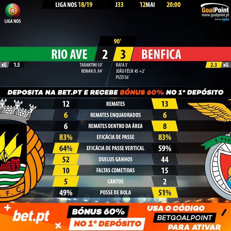 CN 33ª J: Rio Ave FC 2 - 3 SL Benfica, 12Maio. Dom. 20h00 *SPORTTV1*