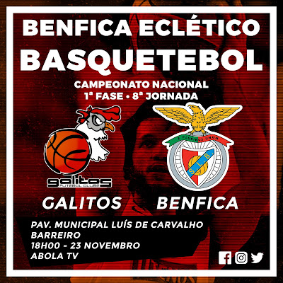 Informação do Jogo: https://www.slbenfica.pt/pt-pt/agora/noticias/2019/11/23/basquetebol-direto-galitos-benfica-liga-placard-campeonato-8-jornada-cronica