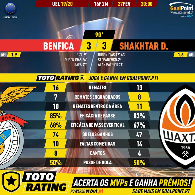 LE 1/16F : SL Benfica 3 - 3 FK Shakhtar Donetsk, 27Fev. Qui. 20h00 *SIC*