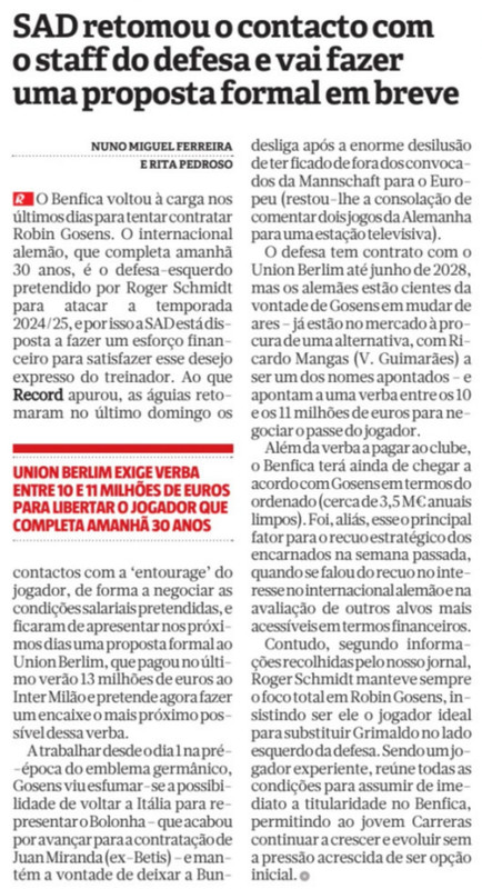 Fechado, houve um erro de interpretação, é falado como alternativa ao Gosens caso ele saia do Union Berlin.
