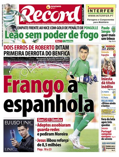 Ao que se passou com Roberto, podemos agradecer a negociata Vieira-Mendes-Cerezo, de resto a (falta de) qualidade estava lá toda. Epá, um tipo consegue perder titularidade para o Júlio César (ex-Belenenses) e recupera-a porque o outro foi expulso e defende um penalty.