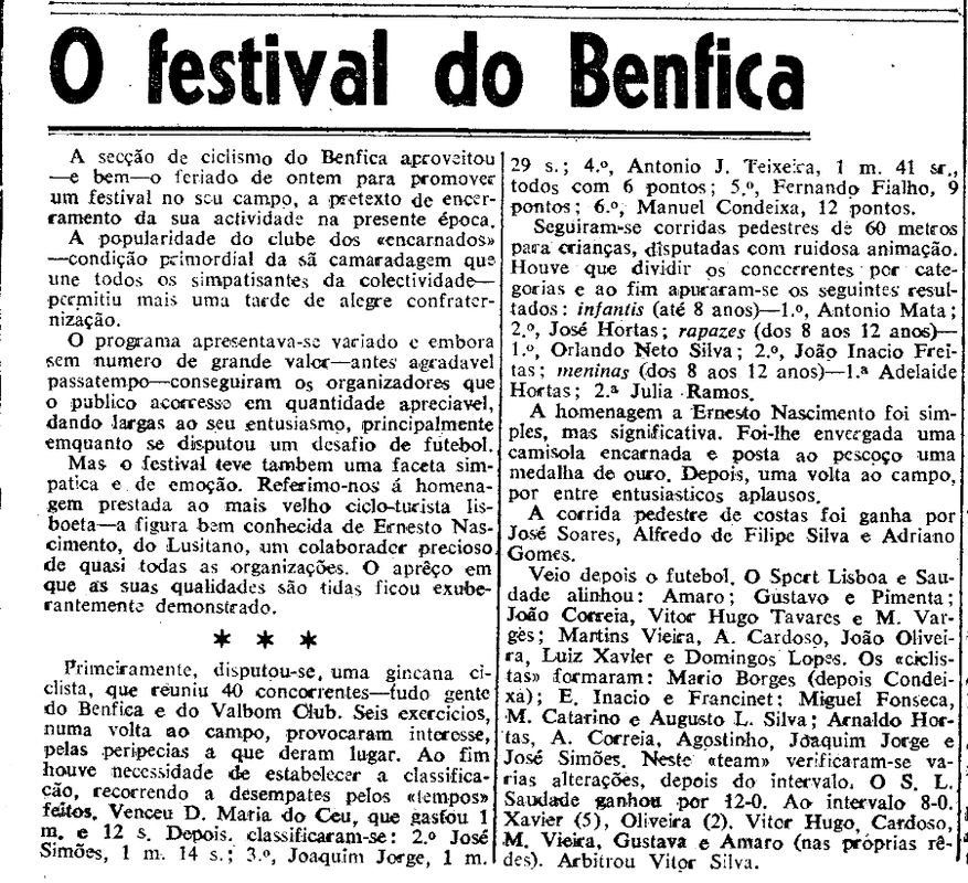 Palmarés Sport Saudade e Benfica/Sport Lisboa e Saudade fundado em 1943;
