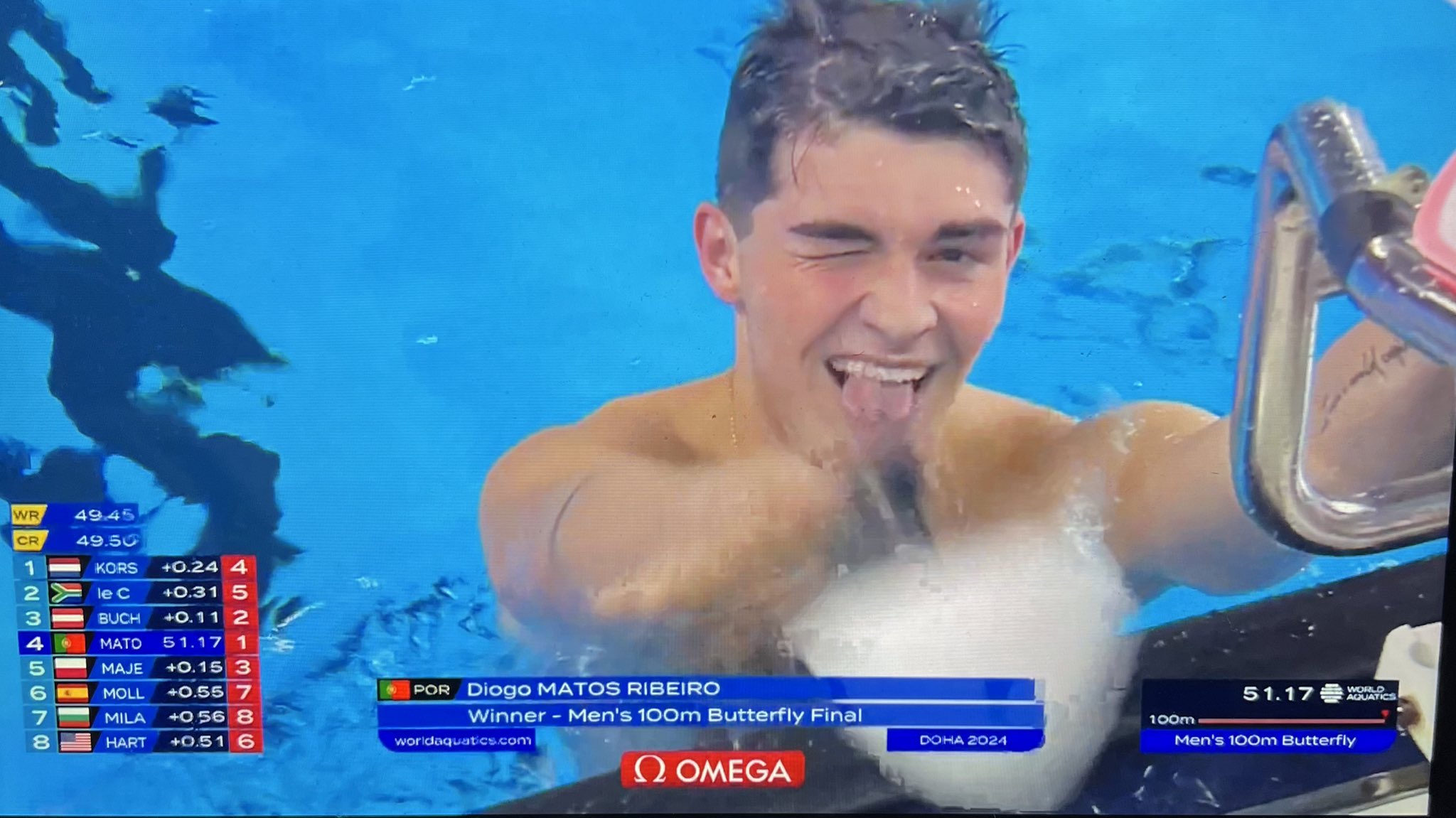Sim, sendo que foi um feito fantástico, temos que ter em conta que alguns atletas que vão estar nos J0 não estiveram presentes neste mundial o Caeleb Dressel, recordista do mundo á cabeça, mas o Diogo tem um potencial absurdo, terá que baixar dos 51 segundos se quiser lutar pelas medalhas em Paris.