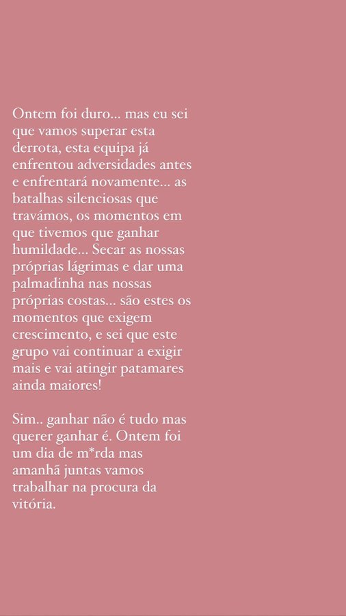 Podemos criticar a treinadora, a jogadora A ou B, mas vir dizer que o Benfica não produziu o suficiente para passar o Famalicão é falso! Jogos maus todos tem, falhas, erros, disciplência é comum no futebol. Podemos achar e eu também acho que com o que temos, tínhamos obrigação de fazer mais, mas os jogos são o que são e volto a dizer, que se o Benfica mesmo não jogando nada, fez o suficiente para seguir em frente, mas o Famalicão acabou por merecer a sorte.
