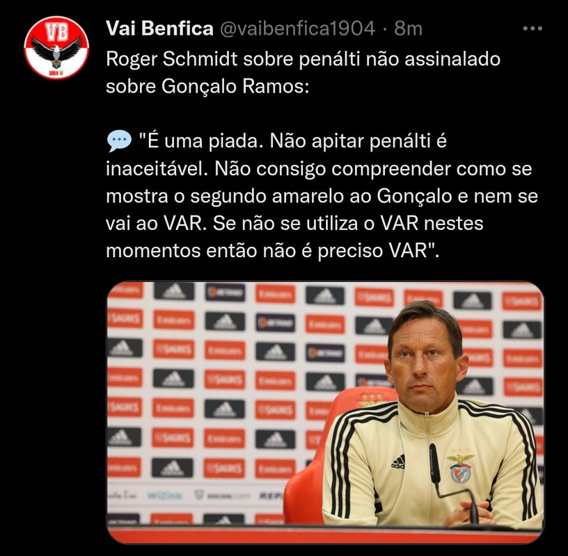 É só a mim que parece que o árbitro primeiro vai apontar para o penalti e depois lembra-se que era a favor do Benfica e como já tinha apitado tem de assinalar simulação?