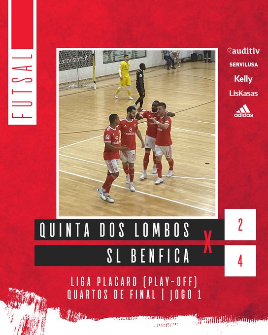 O Benfica venceu o Quinta dos Lombos, por 2-4, em desafio referente ao jogo 1 dos quartos de final do play-off da Liga Placard.