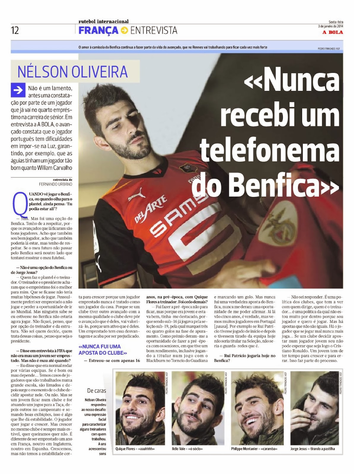 - Não foi uma ideia, é uma evidência! Não estou a dizer que faz mal. Ele é um bom treinador, tem qualidade, mas a verdade é que os portugueses não jogam no Benfica. E olho para a equipa do Sporting, que está em primeiro lugar, e muitos daqueles jogadores jogaram comigo nas seleções jovens. O Benfica tinha jogadores para as mesmas posições com tanta qualidade como eles. Dou um exemplo: William Carvalho é um grande jogador mas o Benfica tinha nos quadros o Danilo Pereira, que naquela altura tinha tanta qualidade como o William. Só que nunca jogou no Benfica, nem sequer foi à equipa principal mas acabou por mostrar no Mundial sub-20 que tinha grande qualidade. Olho para o Sporting e vejo William, que é um ano mais novo que eu; Cedric é da minha idade; Wilson Eduardo é mais velho que eu um ano, tal como o André Martins. São bons jogadores, mas o Benfica tinha jogadores tão bons quanto eles.